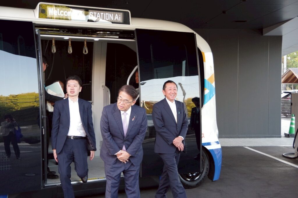 10月29日、大村知事、古本副知事、トヨタ自動車、JR東海の関係者の皆さんとともに、STATION AIで、e-Paletteに試乗しました。